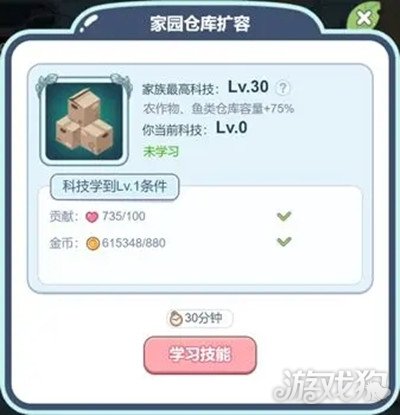 家族科技学习技能也可以扩充仓库容量,但需要消耗家族贡献与金币。另外,拥有月卡可获得50%的容量加成。