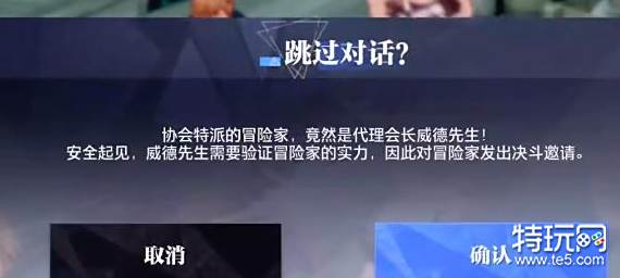 2、对话结束后向我们发出战斗邀请,点击跳过对话直接开始战斗环节。