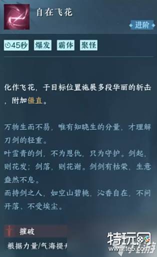 技能效果:造成多段斩击并附加僵直效果。获取方式:抽卡、任务自在飞花推荐使用场景:副本、野外。推荐携带职业:全职业通用。