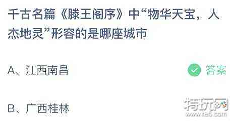 问题二、千古名篇《滕王阁序》中“物华天宝,地杰人灵”形容的是哪座城市?